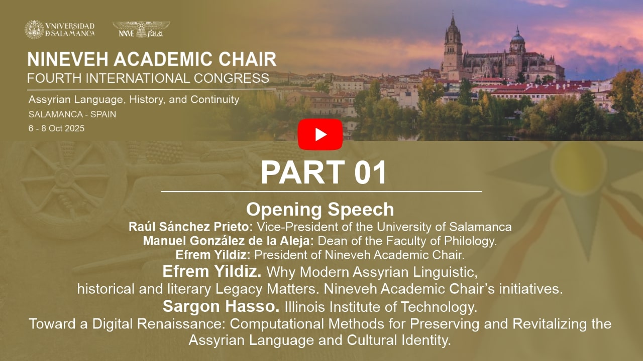 The Fourth International Congress of the Nineveh Academic Chair of the University of Salamanca, to be held will focus on Assyrian language, history, and continuity.